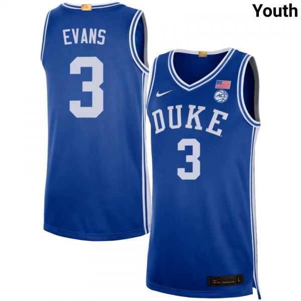 • #3 Isaiah Evans Duke Blue Devils Royal Youth Jersey Player College Basketball